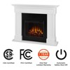 The Thayer electric fireplace is a fresh take on a traditional design, with clean linear details and a crisp, well-defined mantel. The Real Flame® VividFlame™ electric firebox mimics the look of a real, flickering fire, but does not require a chimney or vents and conveniently plugs into a standard outlet. This free-standing indoor fireplace has a mantel with a real wood finish and features six flame colors, five flame brightness levels, adjustable thermostat, timer function and automatic safety shut-off. The electric fireplace insert provides supplemental heat for rooms up to 1,000 sq ft or the heater can be turned off so you can enjoy the comforting ambiance of a glowing fireplace year-round. Mantel, firebox with log set, hardware and remote control are included.