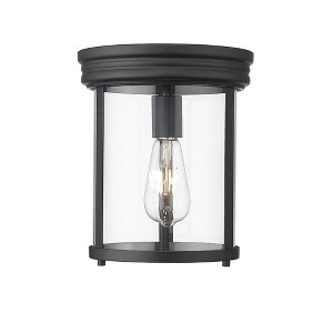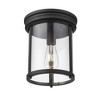 Embrace sleek style with the minimalist silhouette of a modern one-light flush mount ceiling light. From the Thayer collection, it pairs a cylinder of clear glass with a sleek brushed nickel finish and installs at the ceiling for maximum versatility in bedrooms, halls and other living areas. Material: Steel, Finish Color: Brushed Nickel, Width: 9.25", Height: 11", Length: 9.25", Lamping Type: Incandescent, Number Of Bulbs: 1, Wattage: 60 Watts, Dimmable: Yes, Moisture Rating: Damp Rated