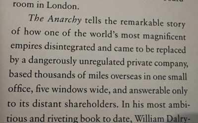 "William Dalrymple, the most versatile chronicler of India past and present, distilled another complex yet highly topical history into The Anarchy, a bloodcurdling account of the East India Co.'s ascent to imperial dominance, full of implications for corporate behavior today." --Maya Jasanoff