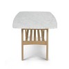 - Keep your plans for the day, this table requires minimal assembly. The marble tabletop and wood frame are attached in four easy steps.