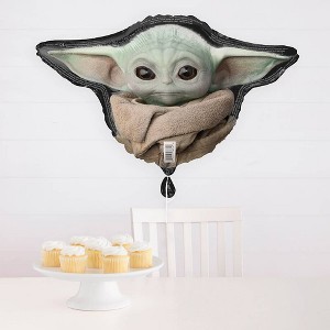 Bring the cutest creature in the galaxy to your bash with our Giant Foil Star Wars The Mandalorian The Child Baby Yoda Balloon. This foil balloon measures 27 inches when fully inflated, sure to bring out-of-this-world style to your Star Wars birthday party. Inflate this self-sealing balloon with helium, and use curling ribbon to tie it down to a balloon weight. Designed to look like The Child (aka Baby Yoda), this balloon will look awesome when combined with more of our party balloons! Shop the rest of our Baby Yoda themed party supplies today, and get all set for a fun bash.