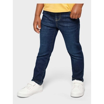 The Children's Place Baby Boys Basic Skinny Jeans FABRICATION: 79% cotton/19% polyester/2% elastane denim, imported.FIT & DESIGN: Slim fit, mid rise, skinny leg.CLOSURE: EZ-Fit features snap closure, no-zip fly, elasticized back waist, inner adjustable tabs.FEATURES: 5-pocket styling, belt loops, handsanding & whiskering at front, pre-washed for added softness and to reduce shrinkage.