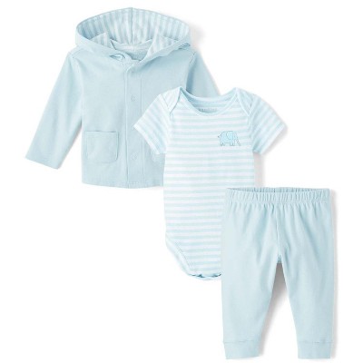 The Children's Place Baby Boys Long Sleeve Striped 3-Piece Outfit Set Blue 0-3 M