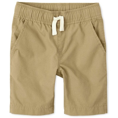 The Children's Place Boys Uniform Canvas Woven Pull On Jogger Shorts 6-Pack FABRICATION: 100% cotton canvas, 65% polyester/35% cotton pockets; imported.FIT & DESIGN: Loose fit, mid rise, at-knee length.CLOSURE: Pull-on elasticized waistband, functional drawstrings.FEATURES: Soft hand feel, kid-perfect comfort, everyday durability, naturally breathable cotton, side-slant and back-patch pockets, fabric finished for added softness and to reduce shrinkage.