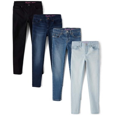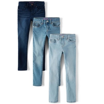 The Children's Place Girls Basic Super Skinny Jeans 2-Pack FABRICATION: 80% cotton/18% polyester/2% spandex denim, imported.MULTIPACK: 2 pairs of super skinny jeans.FIT & DESIGN: Super slim fit, mid rise, super skinny leg.CLOSURE: Snap zip fly (sizes 4-7), button zip fly (sizes 8+); inner adjustable waist tabs.FEATURES: 5-pocket styling, belt loops; handsanding at front, pre-washed for added softness & to reduce shrinkage..