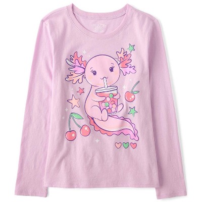 The Children's Place Girls Long Sleeve Cat Cocoa Graphic Tee Green S 5/6