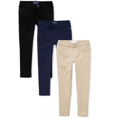 The Children's Place Girls Uniform Twill Woven Skinny Chino Pants 4-Pack FABRICATION: 97% cotton/3% spandex twill with stretch for comfort; imported.MULTIPACK: 4 pairs.FIT & DESIGN: Slim fit, mid rise, skinny opening.CLOSURE: Button closure, zip fly, inner adjustable waist tabs.FEATURES: Soft hand feel, kid-perfect comfort, everyday durability, made-to-move stretch, naturally breathable cotton, side-slant and back-welt pockets, belt loops, fabric finished for added softness & to reduce shrinkage ..