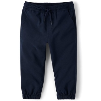 The Children's Place Toddler Active Fleece Jogger Pants 2-Pack FABRICATION: 70% cotton/30% polyester fleece; 100% cotton H/T Smoke waistband and leg cuffs; 60% cotton/40% polyester fleece Obsidian style and waistband/leg cuffs of Black, New Navy and Redwood styles; imported.MULTIPACK: 2 pairs.FIT & DESIGN: Loose fit, mid rise, elasticized cuffs.CLOSURE: Rib-knit pull-on elasticized waistband, functional drawstrings.FEATURES: Side seam pockets, fabric finished for added softness and to reduce shrinkage..