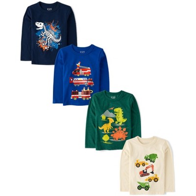 The Children's Place Toddler Boys Long Sleeve Dinos And Trucks Graphic Tee 4-Pack Multi 3T