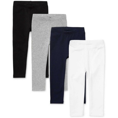 The Children's Place Toddler Girls Faux Denim And Solid Leggings 2-Pack FABRICATION: solid style 94% cotton/6% spandex jersey; 78% cotton/18% polyester/4% spandex French terry in a faux denim knit; imported.MULTIPACK: 2 pairs.FIT & DESIGN: Super slim, mid rise, ankle length.CLOSURE: Pull-on elasticized waistband.FEATURES: Tagless label..