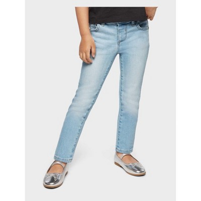 The Children's Place Toddler Girls Super Skinny Jeans FABRICATION: 76% cotton/18/% polyester/5% recycled cotton/1% elastane denim, imported.FIT & DESIGN: Super slim fit, mid rise, super skinny leg.CLOSURE: EZ-Fit features snap closure with no-zip fly, elasticized back waist, inner adjustable tabs.FEATURES: 5-pocket styling, belt loops, handsanding at front for a lived-in look, pre-washed for added softness & to reduce shrinkage.