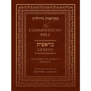"Each page in The Commentators' Bible: Genesis: The Rubin JPS Miqra'ot Gedolot contains from one to several verses from the book of Genesis, surrounded by both the 1917 and the 1985 JPS translations and by new contemporary English translations of the major commentators. Also included is a glossary of terms, a list of names used in the text, notes on source texts, a special topics list, and resources for further study. This is in large-format volume and is designed for easy navigation among the many elements on each page, including explanatory notes and selected additional comments from the works of Bekhor Shor, Sforno, Gersonides, and Hizkuni, among others."--Reviews by Amos Lassen