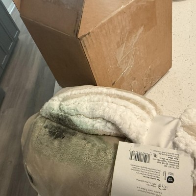 A: The throw blanket is made from 59% acrylic, 38% nylon, and 3% wool.