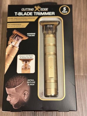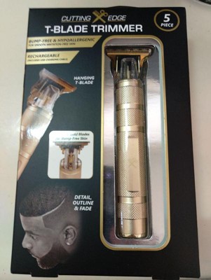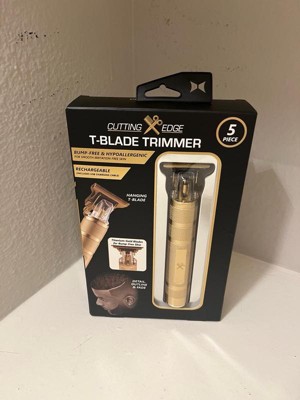 [This review was collected as part of a promotion.] The Cutting Edge T Blade Trimmer is very durable . It comes with a USB cable to charge and can be used for up to 120 min of shave time. . It also comes with 4 guide combs . It is easy to grip and get a precise trim .