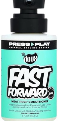 The Doux Fast Forward Heat Protectant Conditioner - 16 fl oz - Fast Forward Heat Prep Conditioner from the Pres Play Thermal Styling Collection prepares hair for heat styling with DOUXplex™ bonding technology, delivering intense moisture to restore elasticity and strength in preparation for heat styling. This conditioner smoothes the cuticle to reduce friction and tension, providing instant detangling and a silky soft finish.