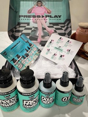 The Doux Press Play System, a first-of-its-kind Thermal Styling System formulated for textured hair. Coined as 'The Silk Press of the Future,' this innovative straightening system features both thermal protection and a bond-building complex (DOUX-plex™). This system ensures that textured hair receives the care it deserves, preventing damage from thermal styling while providing a comprehensive solution for those who want both straight and strong hair.
