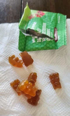 We were excited to try these, but the second you open the pouch you are overwhelmed by a horrible smell and they taste just as bad. Kind of like the smell and taste of the old school big multivitamin that has that strong taste and smell that makes you gag. They are quite hard and sticky for a gummy as well.