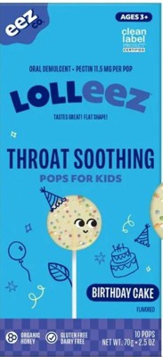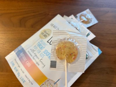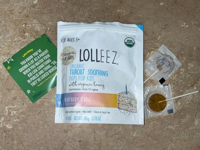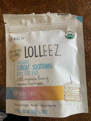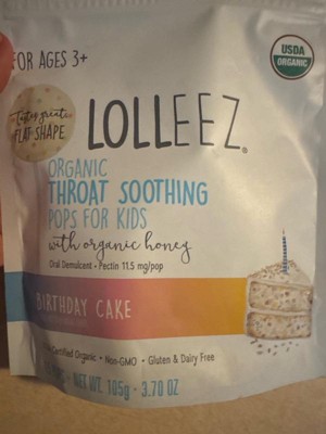 [This review was collected as part of a promotion.] Lolleez Organic Throat Soothing Pops Birthday Cake flavor is an organic lozenge that soothes the throat, with a sweet taste and is safe for kids. The product contains no artificial chemicals or colors. However, it may be too sweet for some, and its effectiveness is not as strong as regular cough medicine. It’s a good choice for those looking for a natural and tasty option.