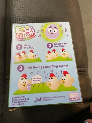 [This review was collected as part of a promotion.] This Egg-Cellent Hide ‘N’ Seek toy is seriously so much fun. The company What do you meme really put a lot of thought into this toy. It requires 2 AA batteries which are included. Super easy to use, plus it lights up, sings, has simple phrases & you can play hide n seek with it. When my kiddos want to play I am the one who hides it. Or they will fight or tell where the egg is before they have time to search. I hide it & press the button, as the kids look the egg will sing to give its location. Such a neat toy and your children will have sooo much fun. I highly recommend!