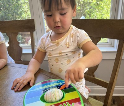 My 2 year old loved this! Kept her busy for at least an hour. She would have kept going if I had more eggs to boil. This is great because there really is no mess and the designs come out really cool! Also, great age range! The kids aged 2-8 all loved doing this.