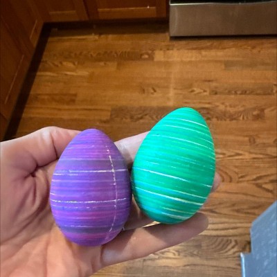 We got this to decorate eggs with my toddlers and it was perfect for them! We used wooden eggs because of an egg allergy and they also fit perfectly! Highly recommend!
