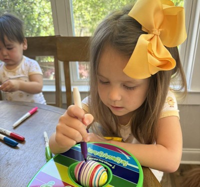 The Eggmazing Egg Decorator is a hit among guests for its mess-free, fun, and easy-to-use design. It's a great tool for kids and adults alike to enjoy egg decorating, especially during Easter. The product comes with markers that allow for creative designs, though some guests noted they can run out quickly. Despite this, the product is highly recommended for its ability to make egg decorating a more enjoyable and less chaotic experience.