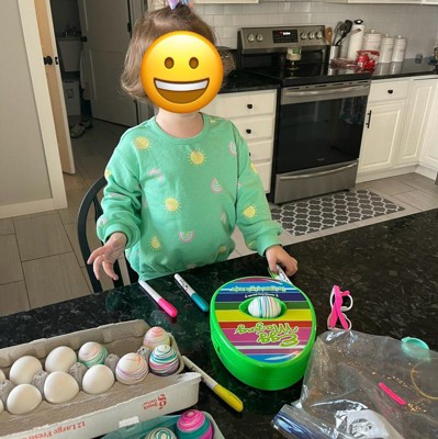 Bought this thing on a whim last year and as an adult, I love it haha! My four year old also had a blast. It was almost hypnotizing to watch the color patterns appear, I just wanted to keep making more! We used our own set of brush markers and the dyeable plastic eggs