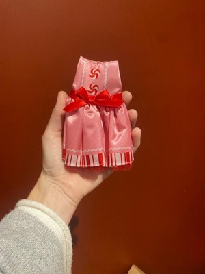 [This review was collected as part of a promotion.] A candy cane designed dress for your female elf on the shelf, it’s so cute, has candy cane buttons and designs on the skirt, good quality to last many Christmas’ to come. Fits perfectly!