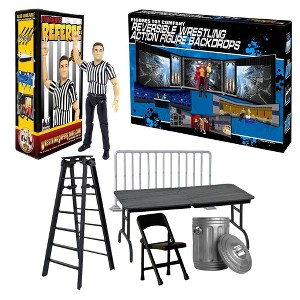 Includes our Ultimate Referee action figure, set of 5 wrestling props and NEW reversible wrestling action figure backdrops!