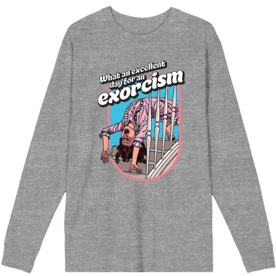 • CUSTOM DESIGN: Showcasing possessed Regan in her iconic backbend, this apparel captures the chilling essence of The Exorcist with the quote "What an excellent day for an exorcism" printed in bold, a perfect blend of horror and style for any fan.