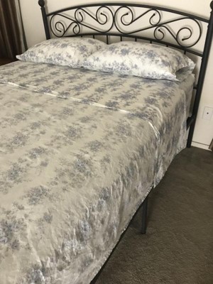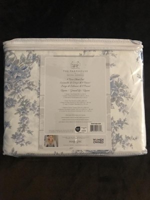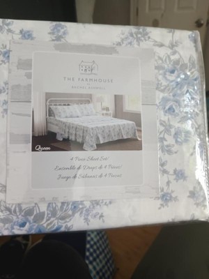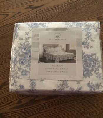 [This review was collected as part of a promotion.] The Farmhouse by Rachel Ashwell British Rose Queen 4 Piece Sheet Set has a very pretty pattern of blues roses with gray leaves and stems. The fitted sheet fits well and it comes with two pillowcases. I wish it came with four.