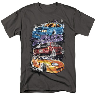 The Fast & the Furious Title Logo and Monochromatic Car Men's Charcoal Gray Graphic Tee