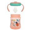 Help your baby transition from bottle to sippy cup with The First Years Soft Spout Trainer Cup. The silicone spout was designed to help make the transition from bottle to cup smoother for your child. We worked with a Pediatric Feeding Specialist to be sure that both the spout size and shape help to promote proper oral development. The trainer sippy cup also helps to prevent spills so that drinks stay inside the cup and off of your little traveler. It’s natural for little ones to drop things, but handles make it easier to hold on to and the sippy cup lid has a DropGuard™ bumper that helps prevent breakage when it does fall. When the cup is empty, the dishwasher safe design makes keeping it clean simple.