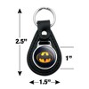 - QUALITY MATERIAL: Our durable round keychain is crafted from leather with a glossy resin-topped emblem featured design shown on one side. Approximately 1.5" (3.8cm) x 2.5" (6.4cm) in overall size, emblem is 1" (2.5cm)..