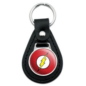 The Flash Lightning Bolt Logo Black Leather Keychain