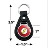 - QUALITY MATERIAL: Our durable round keychain is crafted from leather with a glossy resin-topped emblem featured design shown on one side. Approximately 1.5" (3.8cm) x 2.5" (6.4cm) in overall size, emblem is 1" (2.5cm)..