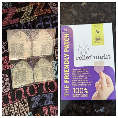 The Friendly Patch Night Relief Patch is a harmonious fusion of plant-powered ingredients designed to bring soothing comfort to body parts that hurt and help you have a restful evening. The Relief Night Patch crafted to address discomfort without compromise. This Relief Night patch is your ally in helping with soreness, comfort, and revitalizing night's sleep. A micro-targeted patch for specific spot relief.Key Ingredients:Arnica Extract (4 mg): Gently embrace your body with its natural plant-based formula, which is known to help with discomfort, fostering a sense of comfort and relaxation.White Willow Bark Extract (4 mg): Unwind as this botanical extract lends its comforting touch, known to help soreness.Melatonin (6.50 mg): Nature's sleep helper, Melatonin, invites tranquility, guiding you into a peaceful snooze.Pterostilbene (1 mg): Embrace the soothing influence of this antioxidant, as it works harmoniously to ease tension and promote a serene state of being.Saffron Extract 2% (1 mg): This extract infuses a subtle sense of calmness, elevating your nightly experience with its mood-enhancing qualities.Magnesium (1.50 mg): Gently supports muscle relaxation, allowing you to release the day's stresses and welcome a sense of calm.Ashwagandha Root Extract (2 mg): An adaptogen embrace that encourages serenity, supporting your body's natural ability to unwind and find comfort.Peppermint Leaf Extract 4:1 (0.5 mg): A refreshing essence that adds a cool touch, contributing to the overall soothing sensation of the patch.L-Menthol Natural flavor (3 mg): Delivers a subtle, cooling relief, enhancing the patch's ability to ease tension.Cinnamon (1.50 mg ): Offers a gentle warmth, providing a comforting element to your nightly routine.CoQ10 (0.50 mg ): Supporting your body's vitality.Unveil the Night Relief Patch as your silent companion on the journey to peaceful nights. Focus on serenity, comfort, and the gentle restoration of well-being. Let each relief night patch be a step towards waking up feeling rejuvenated, allowing comfort to embrace the day ahead.The Friendly Patch products are WERCSmart Certified to ensure formulation ingredients and consumer safety compliance. This 3rd party program represents a safety commitment to our customers and our environment. These Plant-Powered patches are made in the USA without carriers, no fillers, no artificial flavors. Apply the Relief Night patch to clean, dry skin and enjoy the benefits of sustained snooze for up to 12 hours.