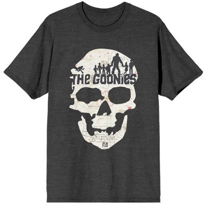 The Goonies Skull Art With Title Logo Women's Charcoal Gray Heather Graphic Tee