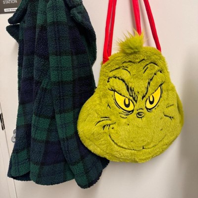 CUSTOM DESIGN: The plush exterior not only adds comfort but also showcases the Grinch's signature coziness, complete with 3D hair and embroidered details that add a playful and whimsical touch to your tote.