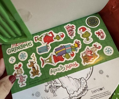 Your child's favorite characters are front and center for coloring and activity fun with Bendon's The Grinch Shaped Coloring and Activity Pad! This unique, sweet shaped coloring book is full of coloring, activities, games, and puzzles on a sturdy backer, plus 3 double-sided crayons and colorful stickers! The handy carry-along handle is perfect travel and fun on the go!