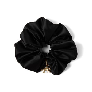 [This review was collected as part of a promotion.] This scrunchie is so soft! It feels very well made, I even wear it on my wrist just as a back up on days that my hair is down. The charm is adorable and adds such a beautiful touch to the simple look. I personally have heavy thick hair and it is great at holding up my look all day. A sleek black scrunchie is a must in every girls makeup bag!