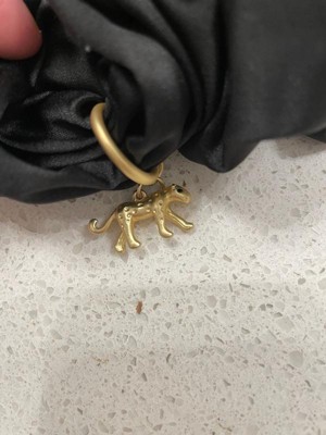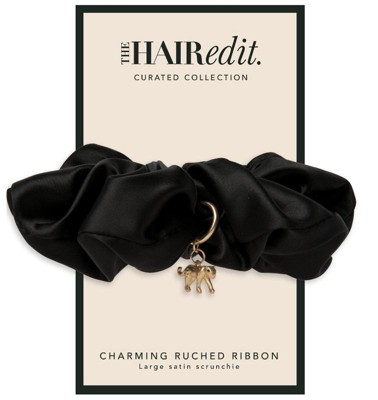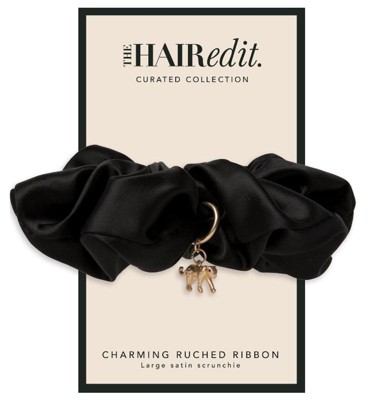 Add charm and pizazz to any look with The Hair Edit's extra-large Charming Ruched Ribbon Satin Scrunchie. Its soft satin finish helps prevent creases while holding hair gently and securely in place, making it a go-to for everyday style. The delicate gold cheetah charm adds a subtle, stylish detail that elevates any hairstyle with a touch of elegance.