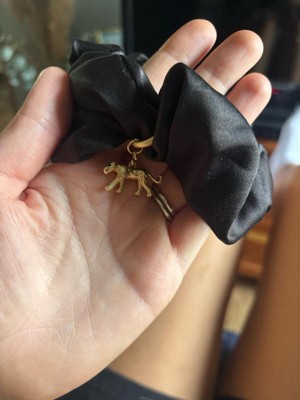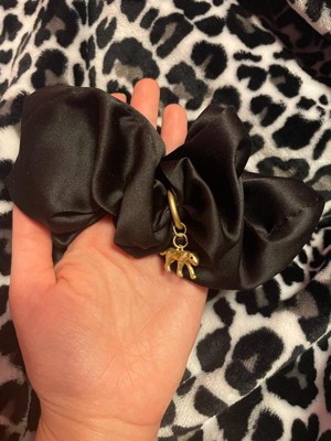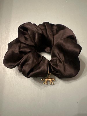 [This review was collected as part of a promotion.] The scrunchie works great and has a more satin feel to it. It is cute and stylish for pulling hair up and doesn’t snag my hair. It’s very durable. I let would be nice to have a more neutral charm than a cheetah.