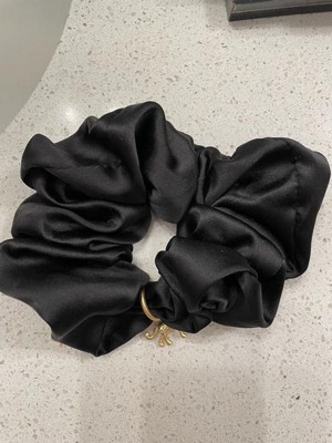 [This review was collected as part of a promotion.] this scrunchie is really big and I use it when I do heatless curls. The little charm on it is so cute made out of metal great quality overall absolutely love it and that it won’t damage my hair because it’s made of satin