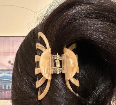 Pretty, but there are no secondary teeth inside the claw, so it doesn’t grip hair as well as other designs. My hair slowly loosens.