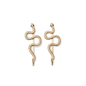 - Sleek, snake-shaped decorative hair pins with a soft gold finish