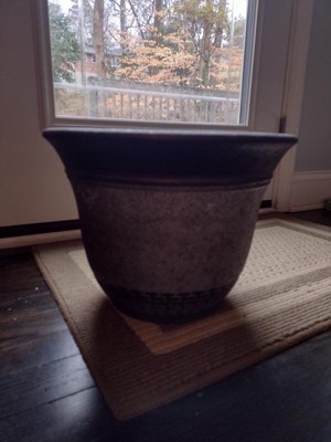 [This review was collected as part of a promotion.] This Myers/Akro Mills Sierra Resin Pot Planter is a great option for a medium size plant inside or outside the home! I love the color and texture, plus the size is perfect for a variety of plants or flowers. I also like how the bottom has a raised area that's removable but also gives the soil an opportunity to drain. I do wish that there were holes in the bottom of the container that would also allow the water to drain completely out. The material does feel a bit light so I am hopeful it doesn't break easily with the weight over time, but overall I like the style of this pot.