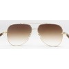 - Thin gold frames with gold bridge and top bar detailing