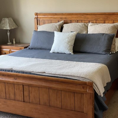 [This review was collected as part of a promotion.] This is a beautiful quilt and shams set. The color is a beautiful neutral cream that goes well with most other colors. And the cross-stitch design gives just enough texture to make it interesting without being over the top. This looks beautiful on its own but would also be great mixed in with different colors or textures of bedding for a really cozy look. I got a king size set to use on my queen bed (I always size up for comforters and quilts) and it is the perfect size with a bit of overhand on each side.