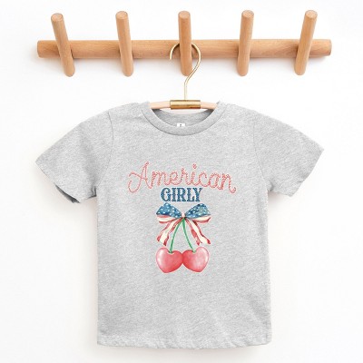 The Juniper Shop American Girly Flag Coquette Youth Short Sleeve Tee - XL - Heather Grey